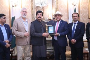 At the conclusion of the meeting, President Ahmad Shafiq presented a souvenir to Governor Sardar Saleem Haider Khan as a gesture of respect and gratitude.